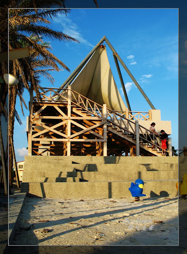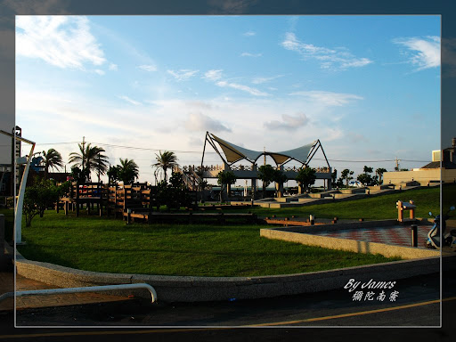 向更沿海的地方騎去,有一片小小的秘密花園。第一次發現這個地方,佔地呢....大約有6~7個籃球場大吧,有個會噴水的水池,但...已經閉上嘴巴了。周邊也有小孩子的遊樂設施,還有讓大人們乘涼賞景的建築,午後閒暇,來這裡散散心應該很棒!